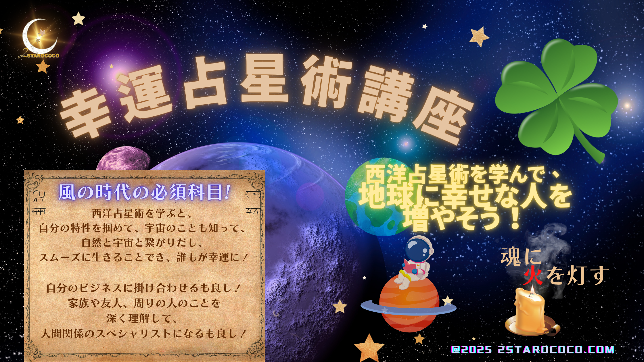 - 西洋占星術を習いたいけど、ちゃんと人を占える実力をつけられるところで習いたい。